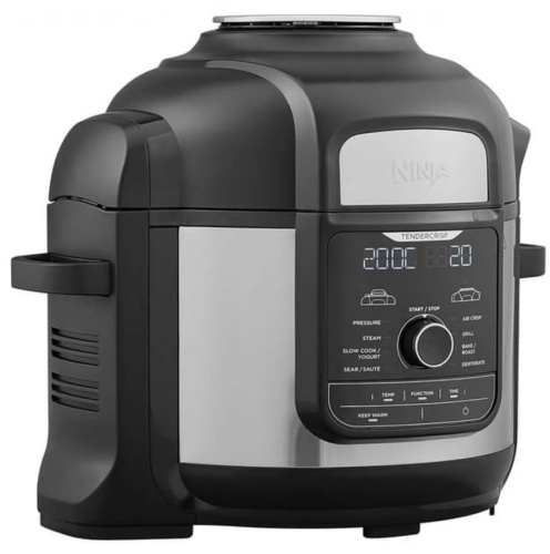 Мультиварка - cкороварка NINJA Foodi MAX 9-in-1 Multi-Cooker 7.5L OP500EU представляет собой прибор с широкими возможностями приготовления пищи. Она выполнена в современном стильном корпусе чёрного цвета с нескользящими ножками, устойчивыми на любой кухонной поверхности. Источником тепловой энергии в устройстве является нагревательный элемент мощностью 1760 Вт. Продукты выкладываются в чашу объёмом 7,5 литров с керамическим антипригарным покрытием, после чего съёмная крышка закрывается и надёжно фиксируется. 9 автоматических программ позволяют готовить еду самыми разными способами. Следует отметить режим скороварки, когда внутри создаётся повышенное давление, чтобы ускорить процесс и сохранить полезные свойства ингредиентов. В корзине для фритюра Cook & Crisp можно получить хрустящую корочку, а на двухуровневой решётке приготовить мясо или рыбу одновременно с гарниром.