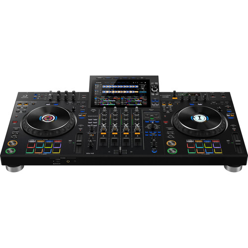 4-канальная профессиональная DJ-система «все в одном» Входы LINE / PHONO × 2 (RCA) , MIC × 2 (XLR и 1/4” TRS jack) Выходы MASTER × 2 (XLR × 1, RCA × 1) , BOOTH × 1 (разъем TRS 1/4") , PHONES × 2 (стереоджек 1/4" × 1, стереомини-разъем 3,5 мм × 1) . USB USB Тип A × 2 , USB Тип C × 1 Другие: Порт LAN (100BASE-TX) × 1 Bluetooth версии 5.3